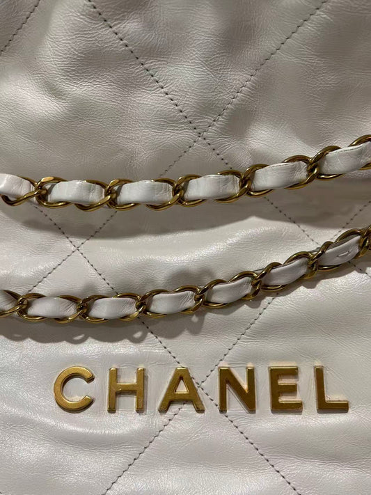 (Preowned) CHANEL 22Bag 23A, gold color, small size, female style, white
