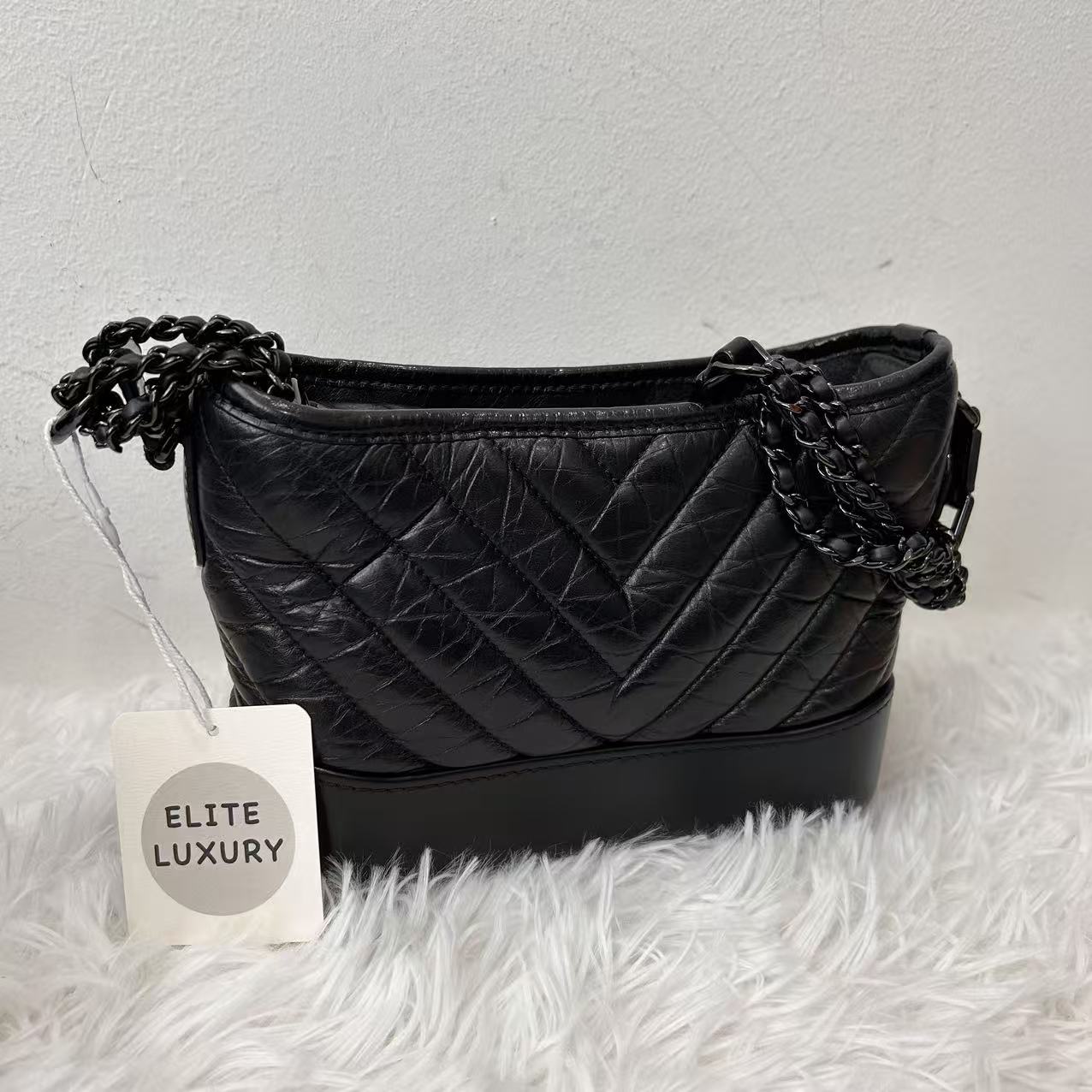 (Preowned) CHANEL GabrielleSo Black V-pattern