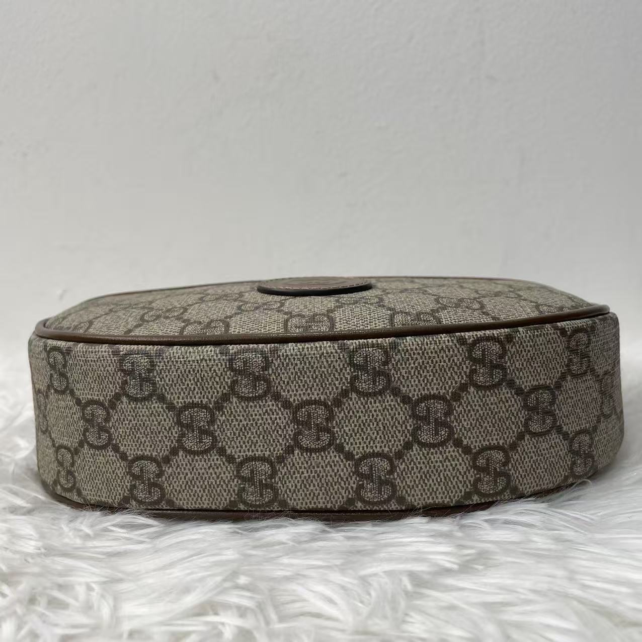 Name:Interlocking Double G Oval Signage Metal Chain Shoulder Strap Zipper Opening Canvas Splicing Leather Rolling Edge Half Moon Bag Handheld Shoulder Bag
